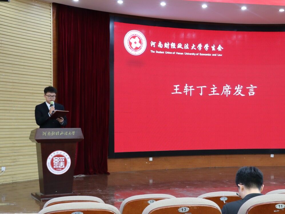 学生代表王轩丁发言,他从自身的经历为切入点向全体同学分享工作经验及建议。2018级学生干部代表齐正源、张宇航,2019级学生干部代表丛子涵、江怡帆分别分享了自己在校会中的成长、收获与期盼。