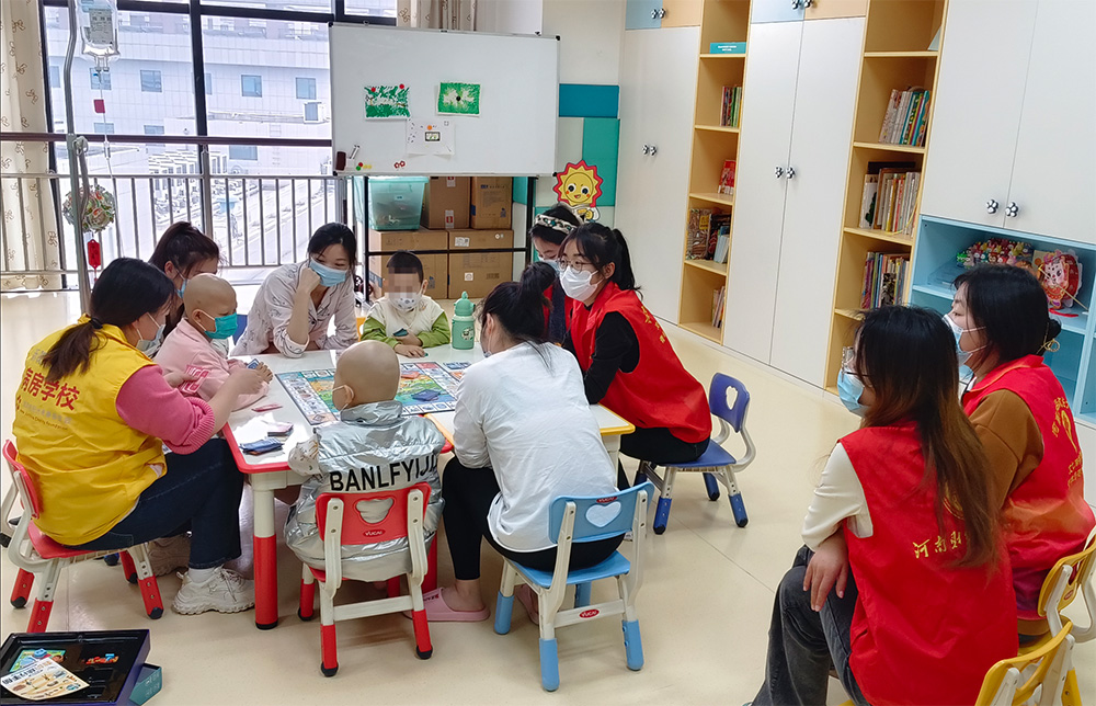 2017年以来,文化传播学院青年志愿者协会持续参与河南省儿童医院爱心病房项目。同学们每周自发前往医院参与活动,一对一陪伴帮助孩子们写作业、做手工、玩游戏、整理教室和教具,此外还通过网络平台为需要辅导的孩子提供远程帮助。